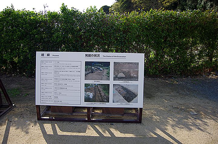 新たに建てられた立て看板には発掘調査の様子や見取り図が示されていて今後の発掘調査如何によっては萩市の新しい観光資源になると思いました。