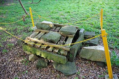 井戸の跡がありますが、こちらも安全面からか立入禁止の措置がされていて当時を窺い知ることは出来ません。