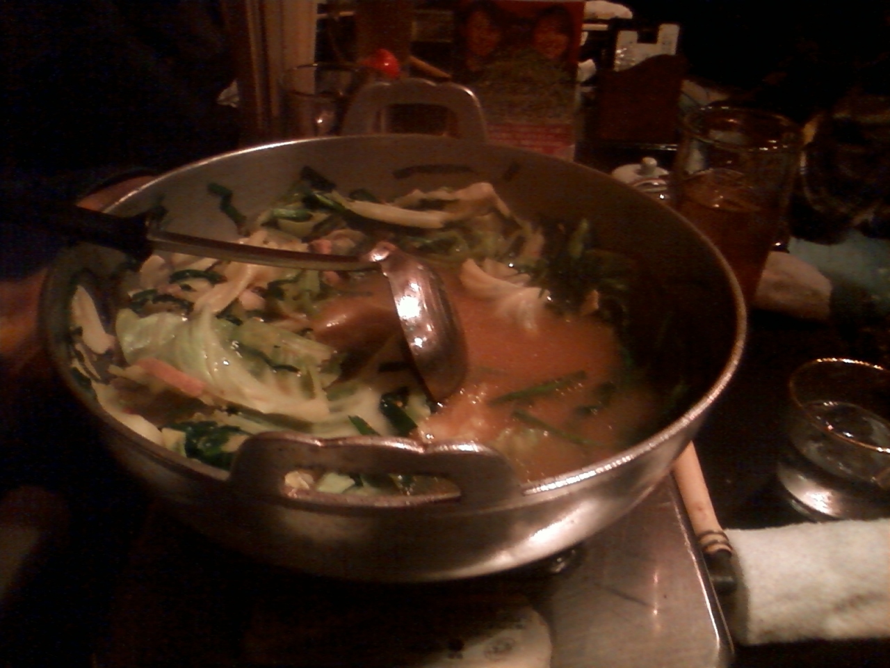 店が狭く、脱いだコートを置く場所もないので腰のあたりに巻いてたらその端を店員が何度も踏んで膝元にまとめて置くと今度は鍋から飛び散った汁がかかる始末。
