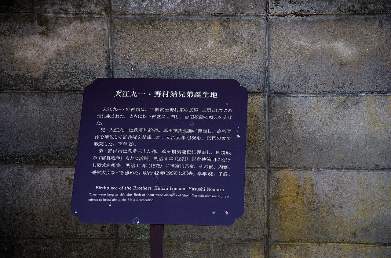 吉田松陰門下生にして幕末の志士、入江九一と明治時代に2度の入閣、神奈川県令も歴任した野村靖の生家が萩市土原にあります。