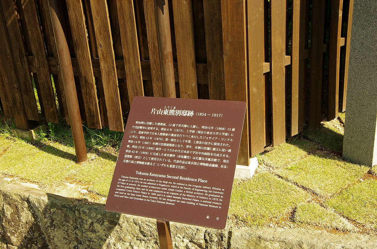 宮内省で赤坂離宮など宮廷建築に多く関わった建築家で、職務として県庁や博物館、宮内省の諸施設など36件の設計に関わった片山東熊の別邸跡が松陰神社の側道から吉田松陰誕生地に抜ける道の傍にあります。