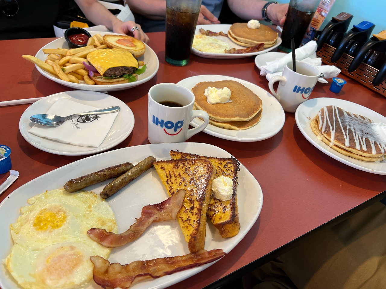 こちらの店舗しか営業していなくて朝食で寄りました。パンケーキとフレンチトーストのセット、やはり多いですね。