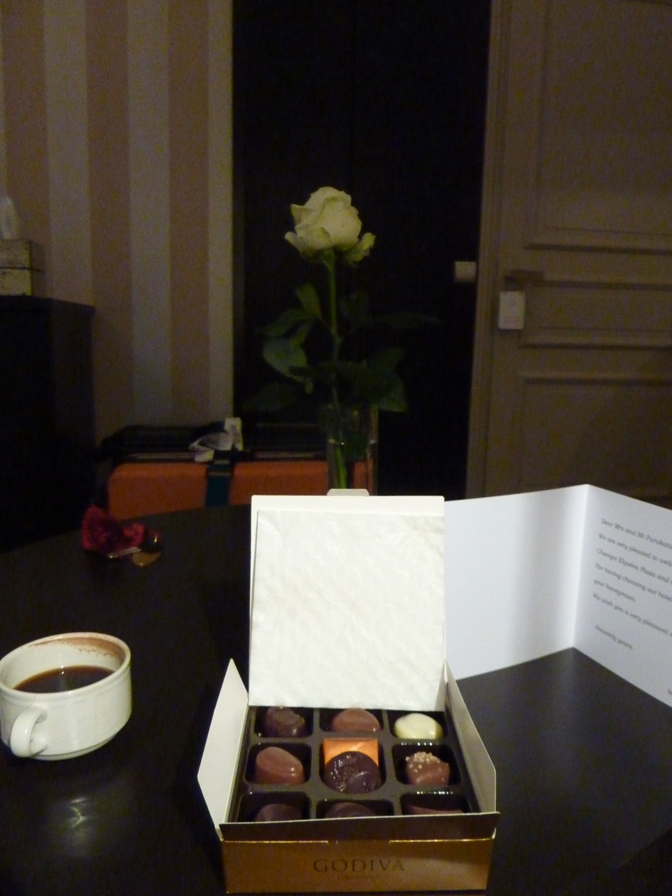新婚旅行だったのでメッセージカードとゴディバのチョコレートを用意してくれていました。