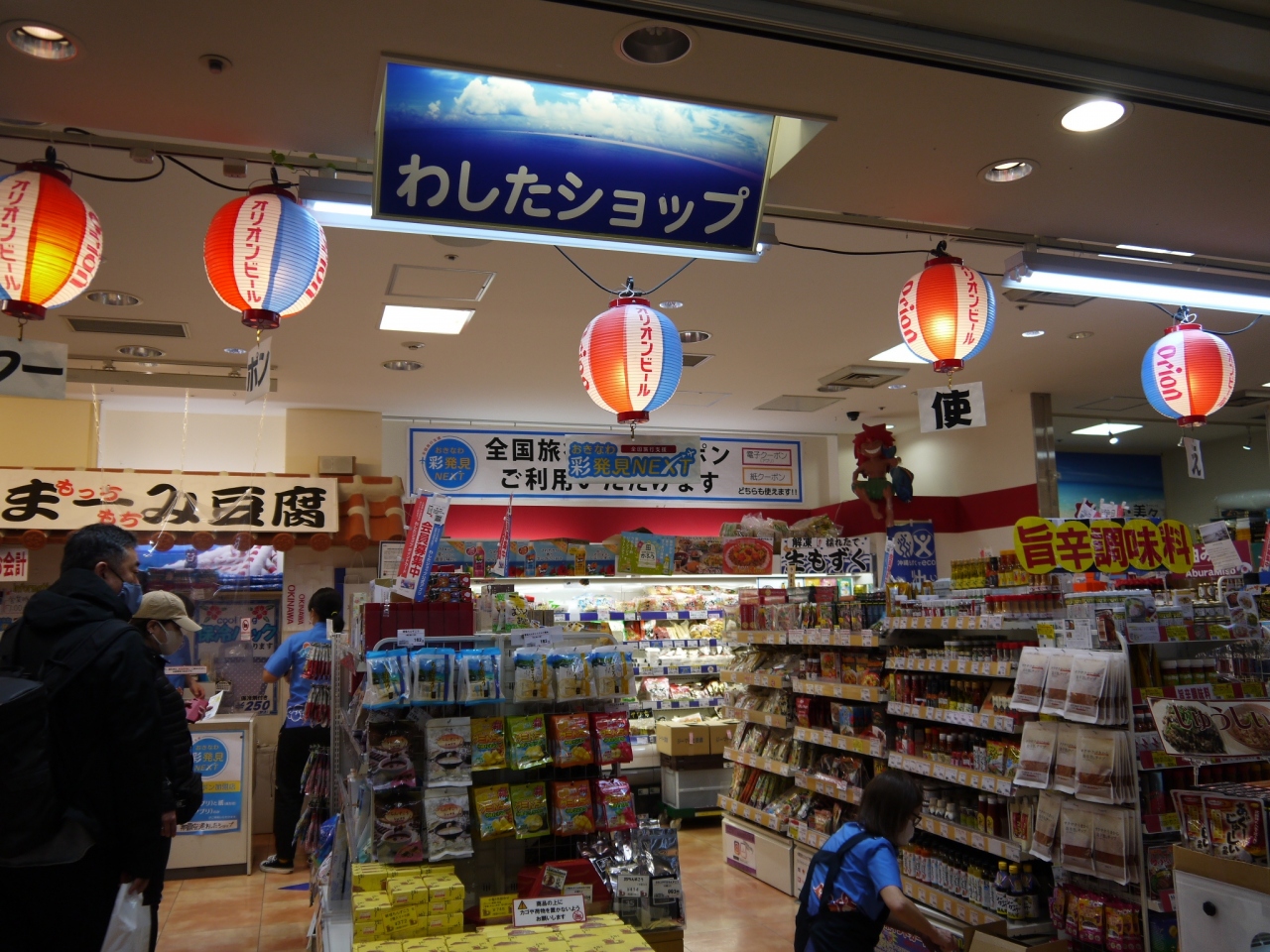 わしたショップ本店は国際通りにあり、こちらの空港店は小規模で空港の隅のほうにあるため目立ちませんが、沖縄の食材やお菓子の種類が多く、国際通りまで行けなかったという時に重宝します。