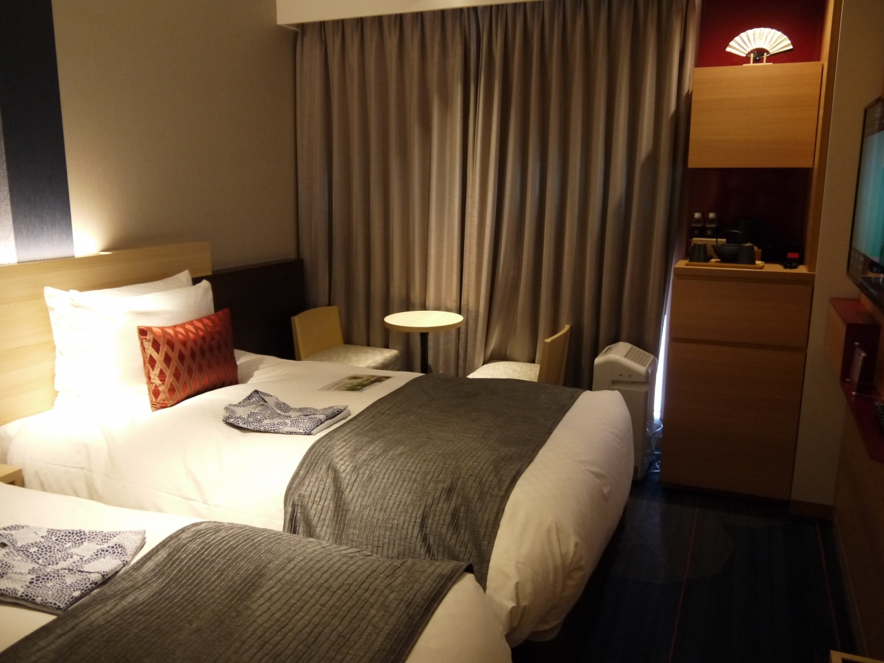 部屋は狭くて暗めの照明しかないので、ホテルライフを楽しむのは不向きですが、日中は観光でほとんど外出しているので、不便さは感じません。