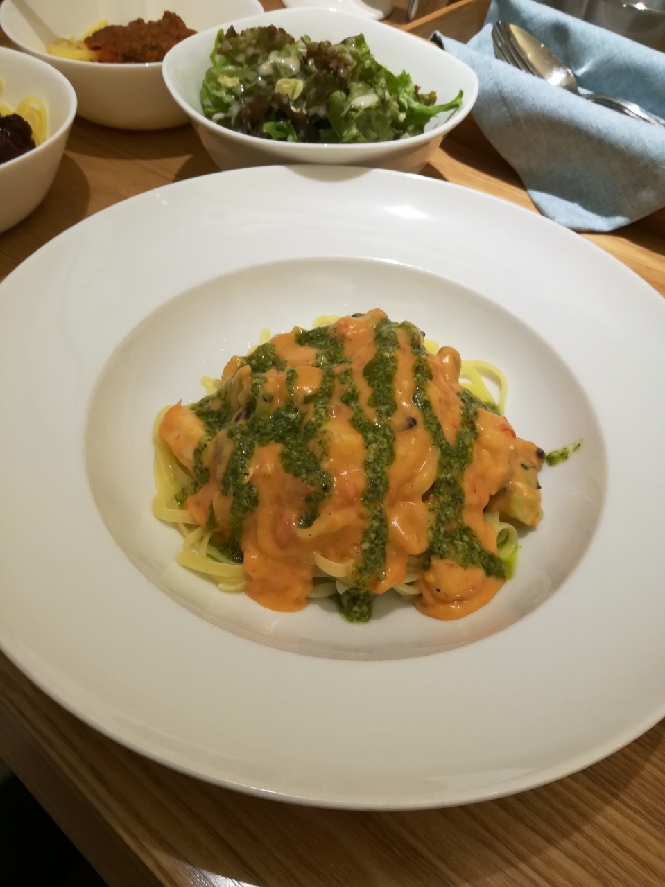 千葉県船橋市にて食事をさせて頂きました。とても新しい感じです。麺は、もっちりした食感で美味しかったです。ソースも手作り感がありました。スパイシーなソースが置いてあり、良かったです。サラダのドレッシングも美味しかったです。