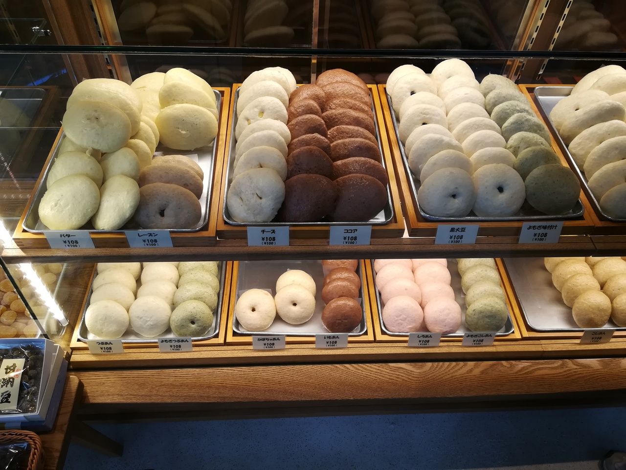 松山旅行の際、買い物をして、食事をさせて頂きました。パンのような柔らかさで、中身は、小豆など色々ございました。歯ごたえも良かったです。お客様も沢山買われておりました。一度食べると、やみつきになる美味しさでした。