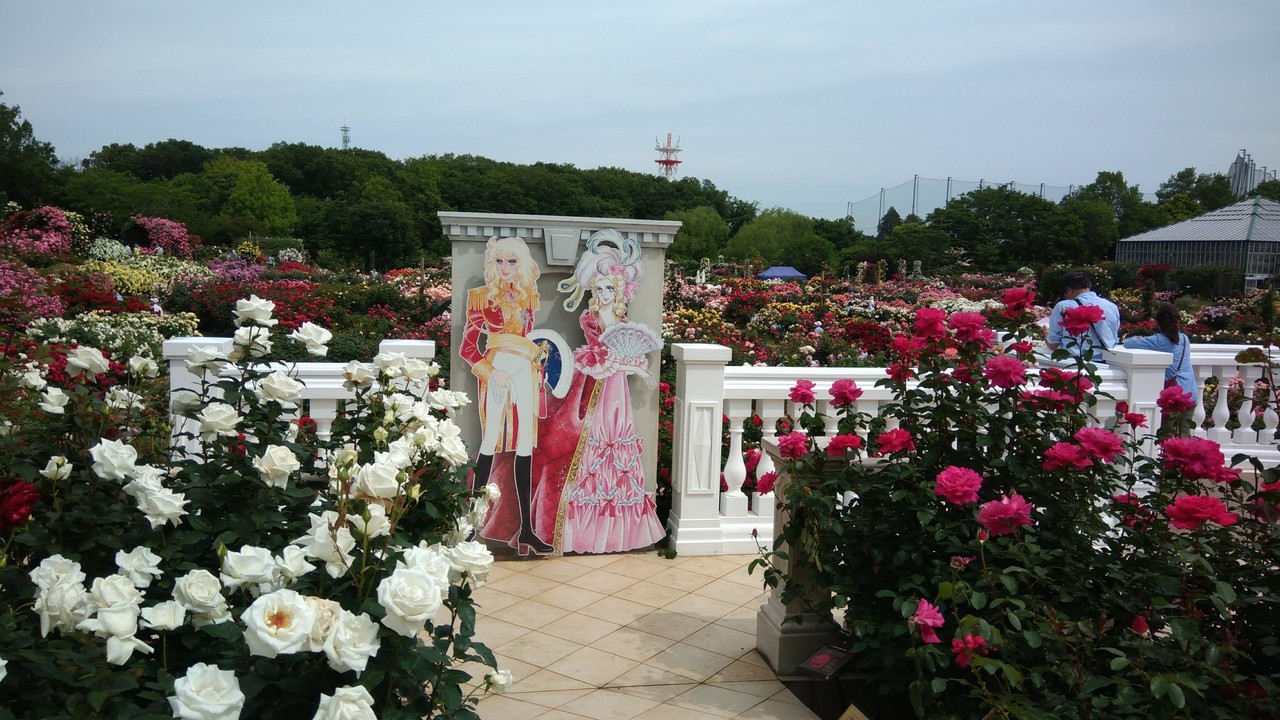 園外には薔薇の鉢植え販売コーナーもあり、ベルばらをイメージした薔薇も販売していました。- 旅行時期
