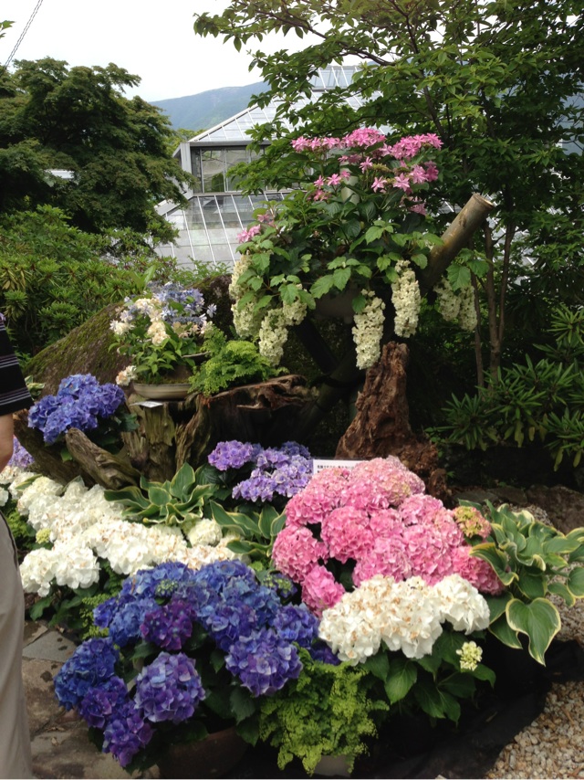 様々な色の紫陽花があるし、噴水などもあって箱根散策のついでに