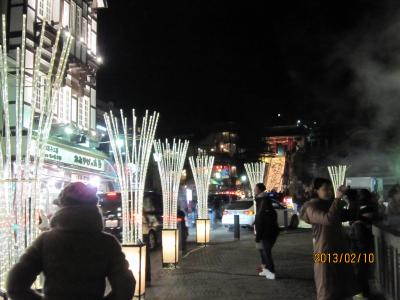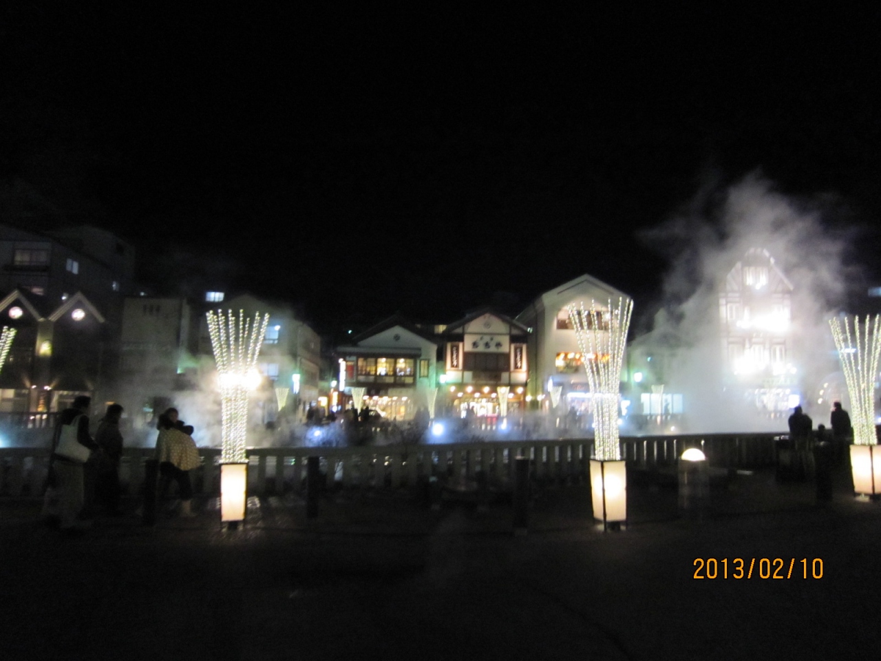 昼の湯畑もいいけど、イルミがあるなら夜の湯畑もいいですね- 旅行時期