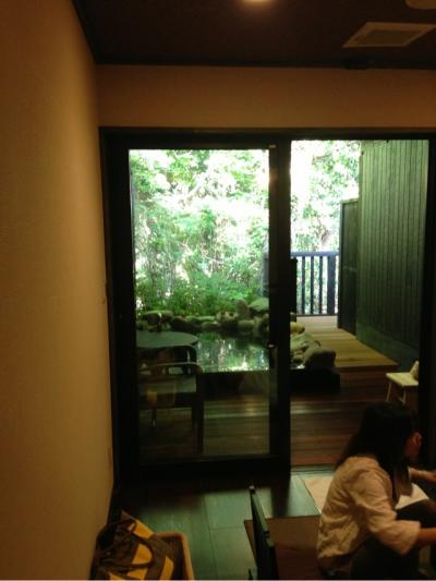 ぬるめのお湯で、露天風呂でのんびりできます。