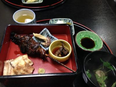 二人ともうな重の松と小鉢、白焼き、肝吸い、肝串がついたコース