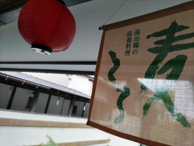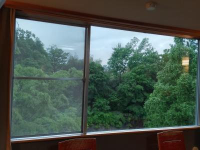 いいお宿でした。窓を開けると鳥のさえずり、露天風呂からも。手前の緑と川向うの緑で景色はいいです。露天風呂付の部屋は温泉ではないとのことで(温泉の入浴剤を配るらしい)普通のお部屋にしましたが、温泉ではなくてもこの雰囲気でしたら露天風呂付のお部屋ならゆっくり出来ると思います。