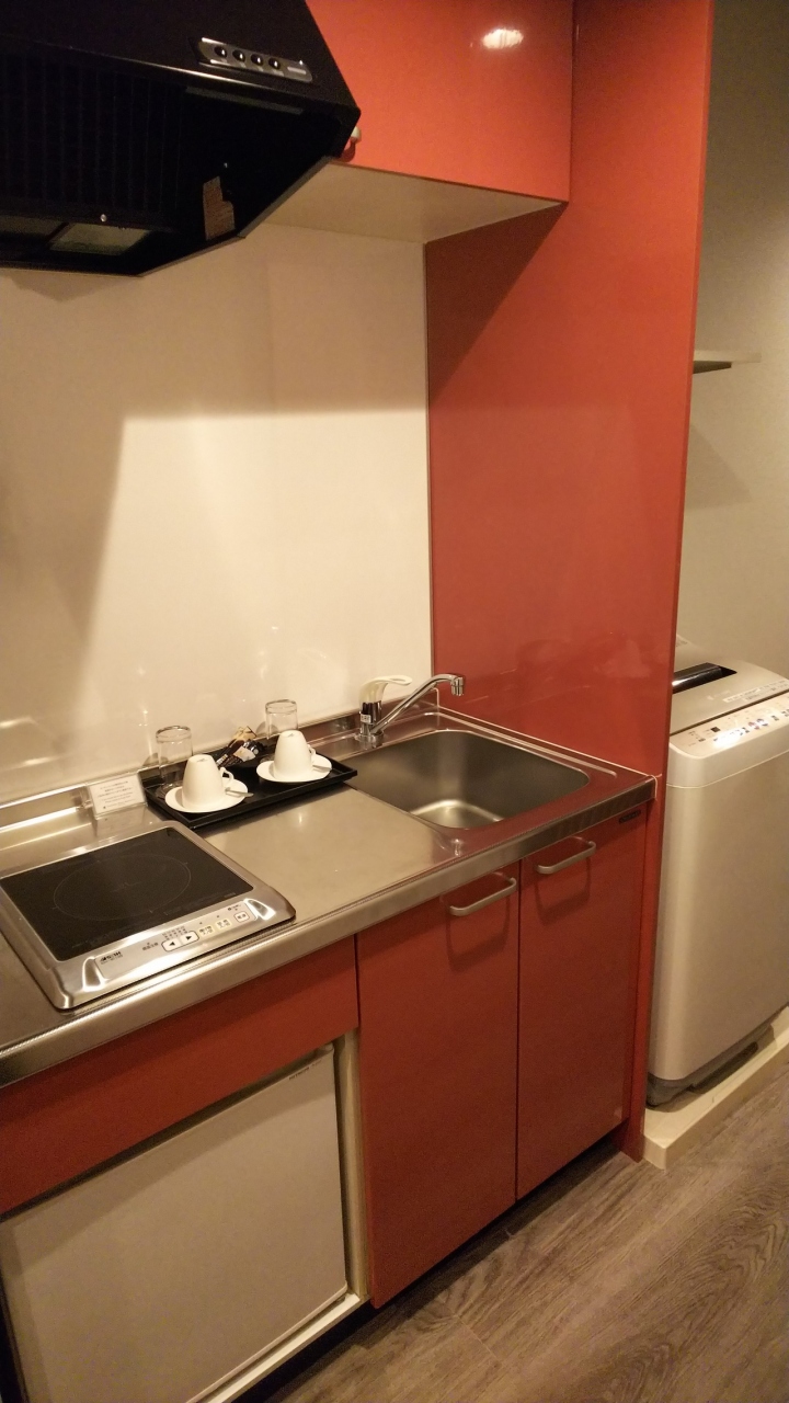 スタッフさん外国の方ですが感じ良かったです。お部屋にキッチン(ただし調理器具は有料)、乾燥機付洗濯機あり。ただしシャワーのみ。ありがたいことにランクアップ。
