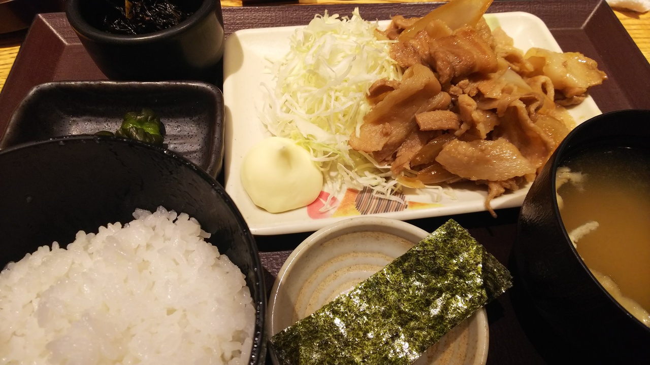 - しょうが焼き定食670円ちょっと高め