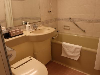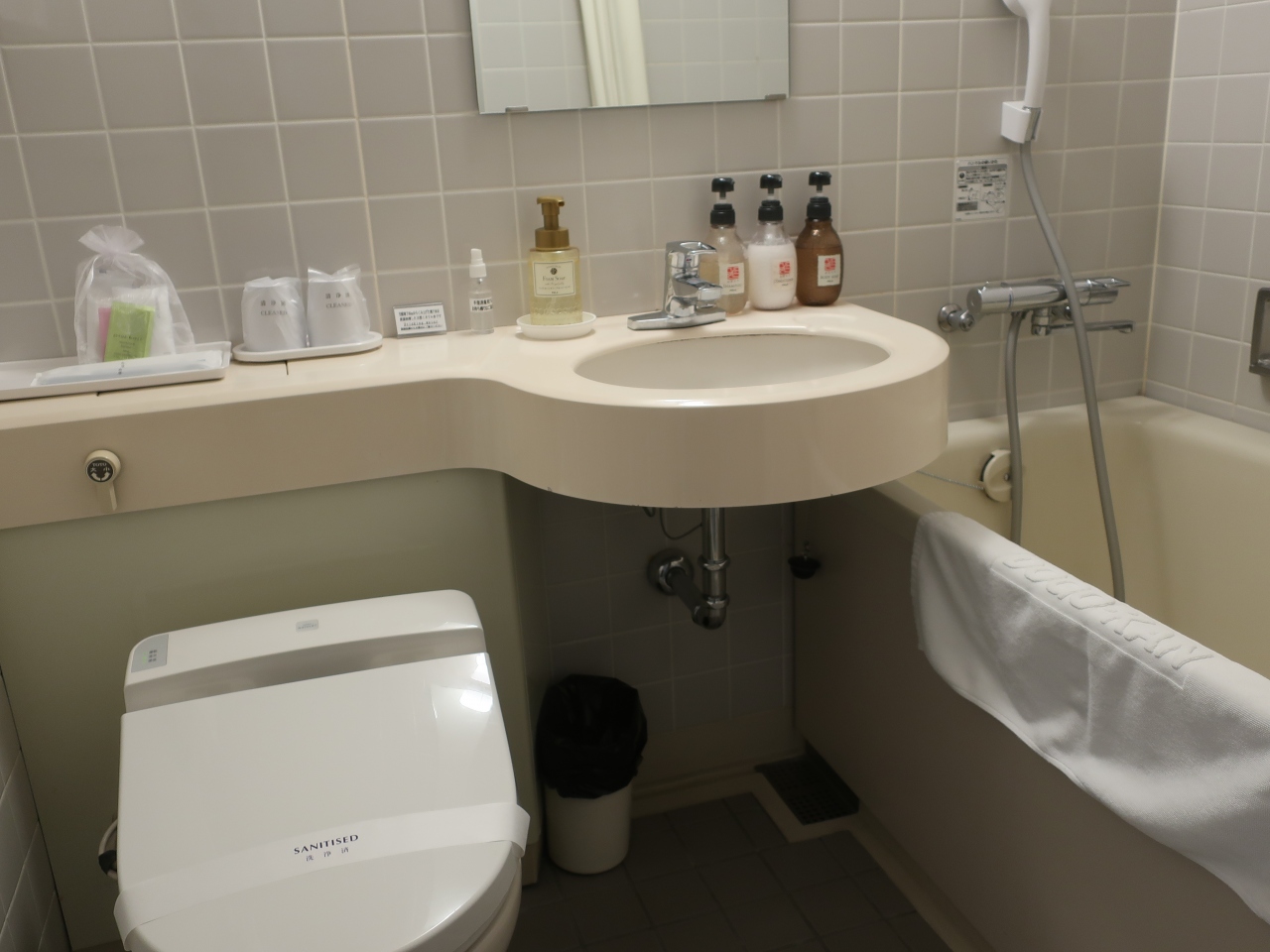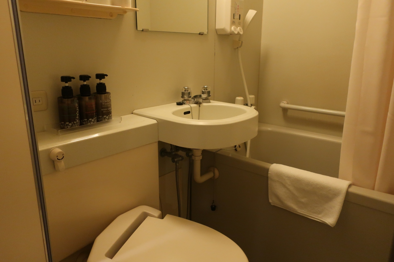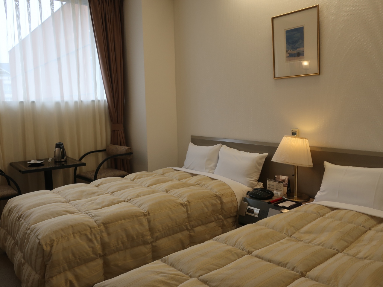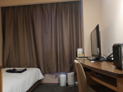 最寄り駅はことでんの片原町。駅からは少し歩きますが、道順はわかりやすく、大きなホテルなので、すぐに見つかりました。一般的なビジネスホテルで、設備は古め、ルームキーがカードキーではありませんでした。駐車場が広く多くの車が駐車していて、車利用の宿泊客が多いのかなと思います。
