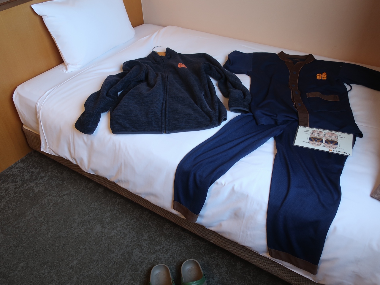 大浴場は2階から、男性は3階への、女性は1階への階段を使います。タオル等は大浴場に備え付けで、部屋から持っていく必要がなく、手ぶらで行くことができるのが楽ちんでした。