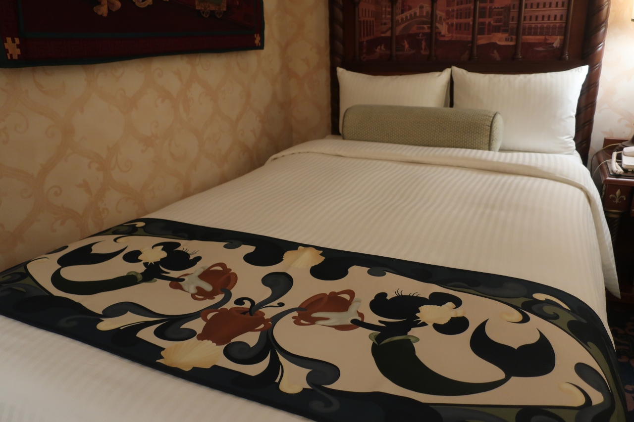 ヴェネツィア・サイドの部屋だったので、窓の外にはヴェネツィアンゴンドラが見え、ヨーロッパで宿泊しているような雰囲気を味わえました。客室の内装、調度品が素敵で、アメニティもとってもかわいらしかったです。