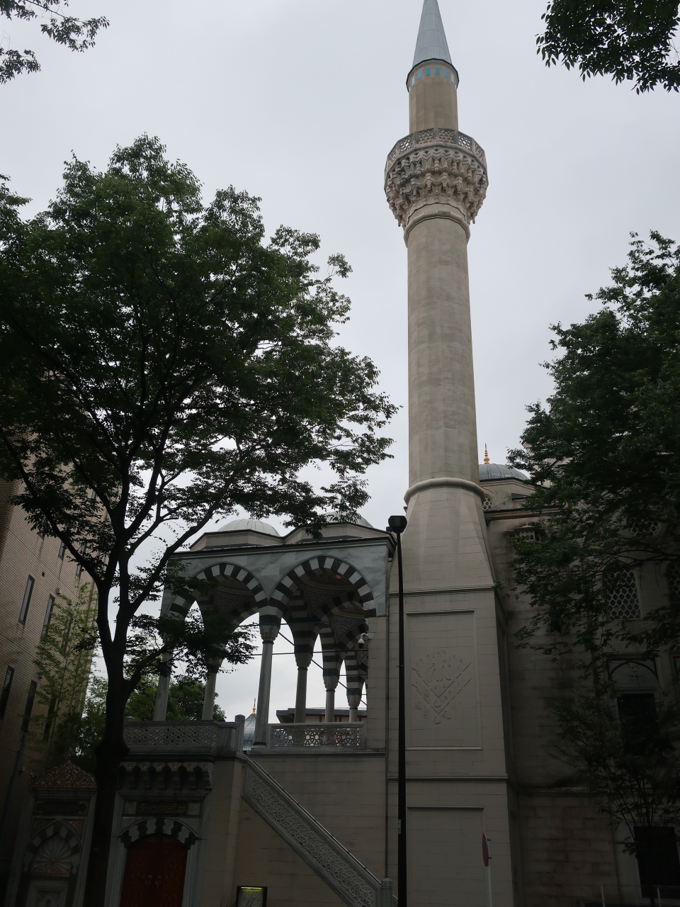 代々木上原駅から歩いてくると尖塔とドームが見えてきます。礼拝堂の入口は2階になります。中へ入る際には肌を露出する服装は避け、女性は頭髪をスカーフ等で覆う必要があります。入口で借りることもできます。