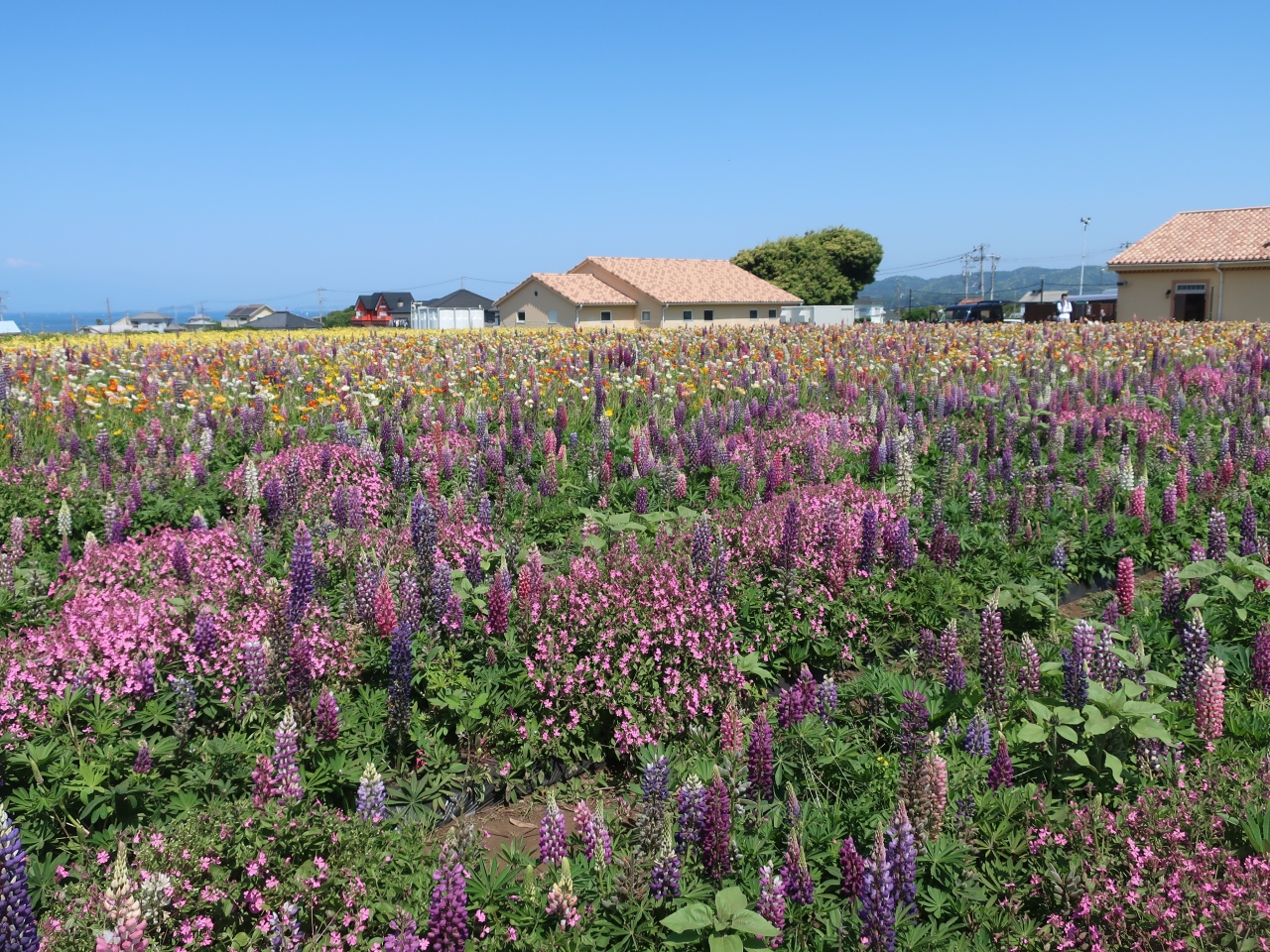 メインゲート付近のフラワーガーデンではルピナスやポピーが見ごろで、富士山もうっすら見えました。各種アトラクションや体験は別料金ですが、入園料が無料なのがうれしいです。