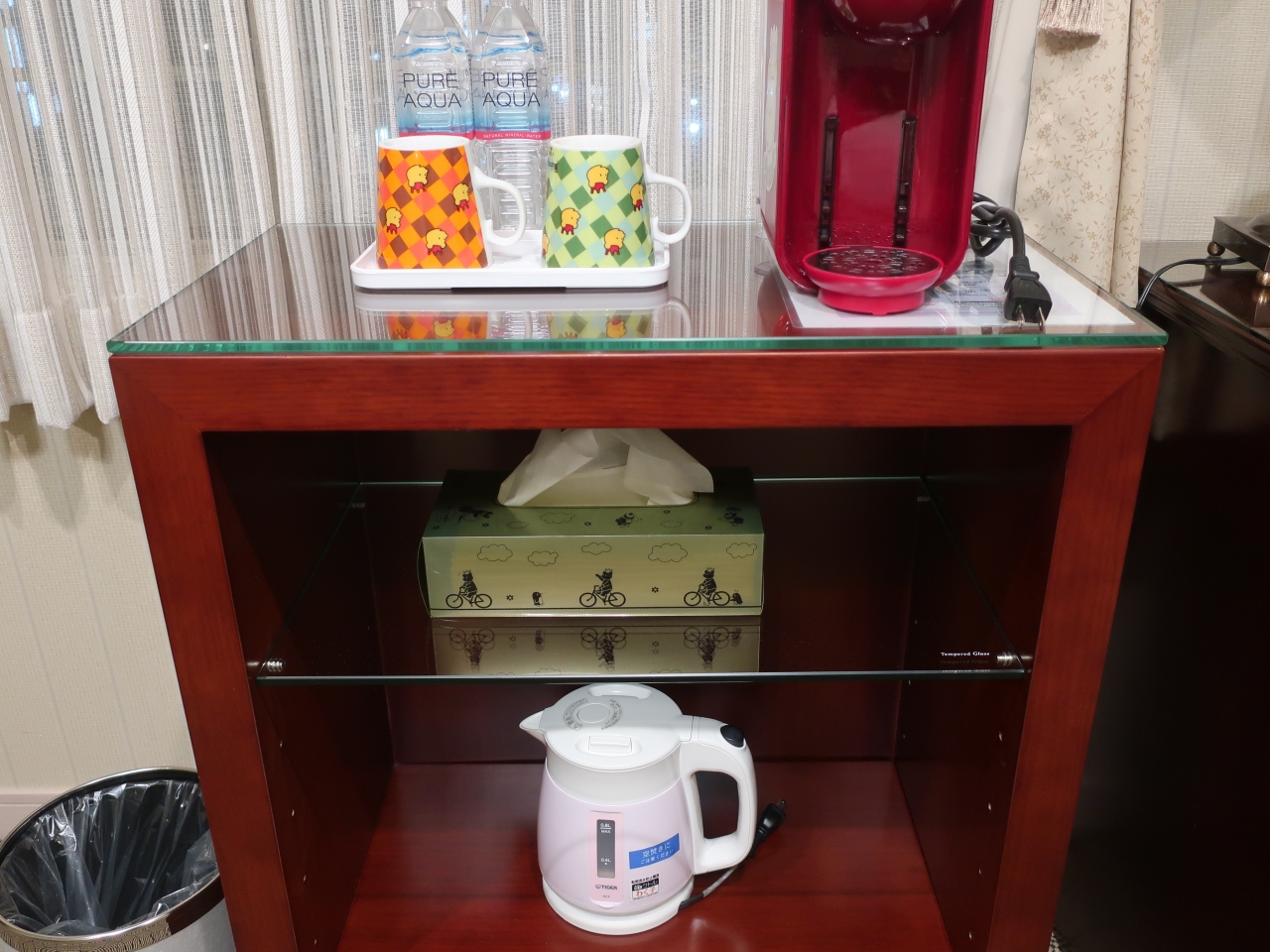 朝は5時からお風呂を利用できます。風呂上りにはどくだみ入り健康茶をいただきました。地下45mから汲み上げという天然水もありました。