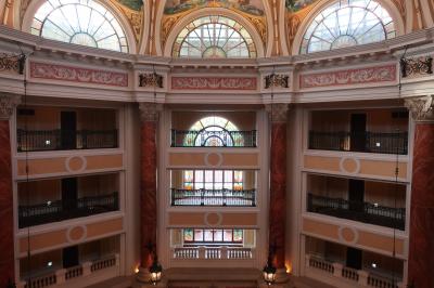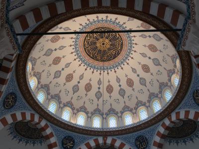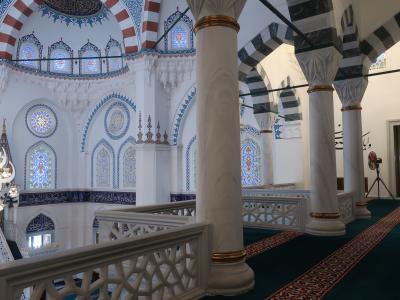 入場後、右手に進んでいくとらせん階段があります。階段上が女性専用の礼拝場所となっていて、そこからは美しいドーム天井、ステンドグラスをより間近で見ることができるので、女性はぜひこちらも忘れずに訪れてください。