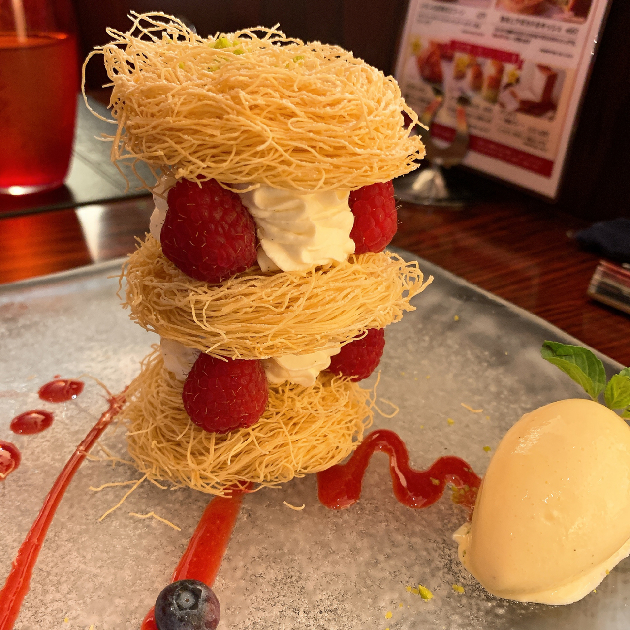 今回、たまたま運良くテーブル席が空いていたのでミルフィーユを注文しました。