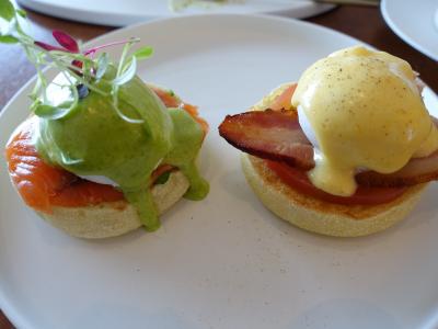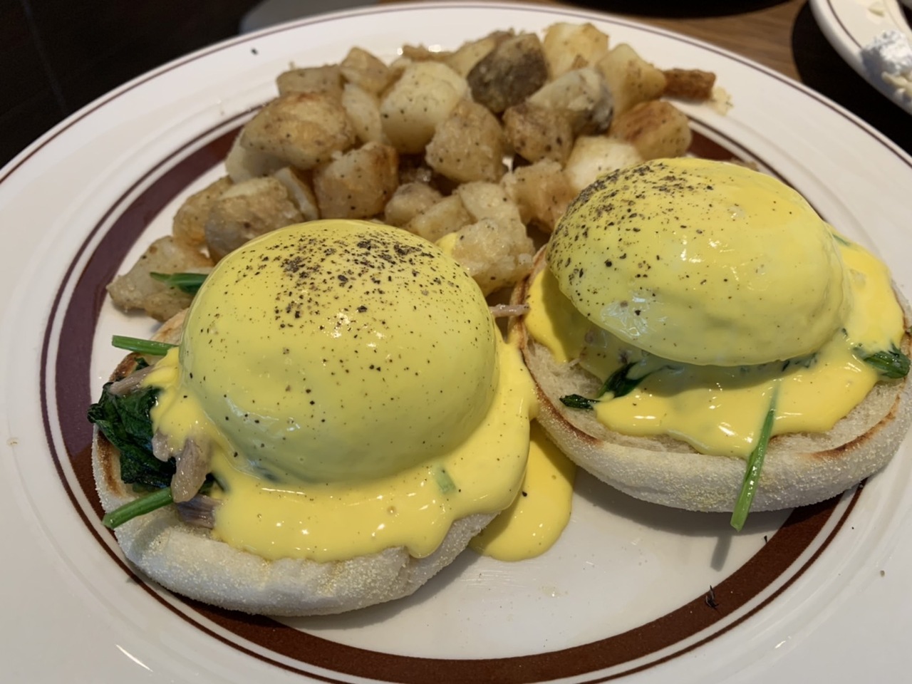 カルアポークとほうれん草のエッグベネディクトを食べました。パンケーキは安定の美味しさでした。