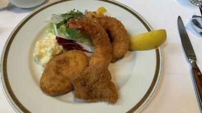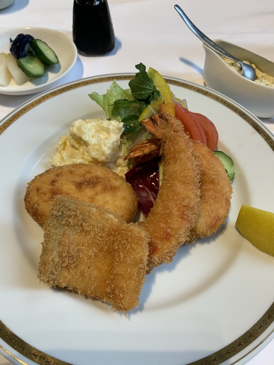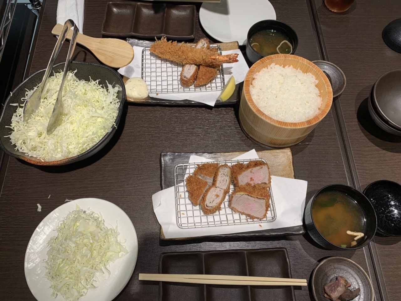 ヒレカツと海老フライをいただきましたが、お肉は評判通りかなり柔らかく、とても美味しかったです。- 旅行時期