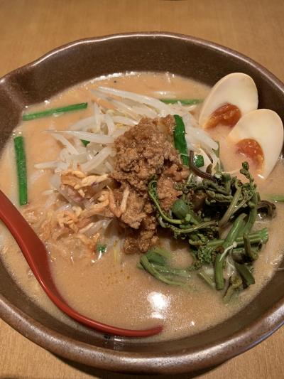 前回食べたのは北海道味噌だったので、今回は信州味噌にしてみました。甘口の九州麦味噌もありました。味噌の種類が定期的に変わっているようです。スープはやや濃口で美味しかったですが、山菜は味噌ラーメンに合わない気がしました。