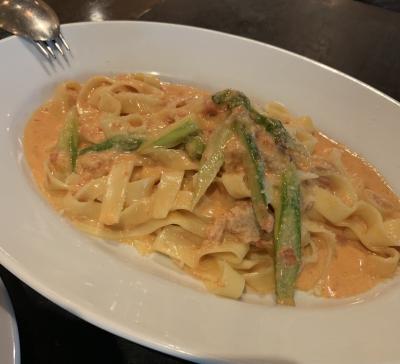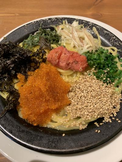 とびっこ、胡麻、ミョウガ、海苔がたっぷり入っていて、たらこが少ない?と思いながらも、全体的に混ぜて食べると食感がすごく良く、パスタもモチモチでとても美味しかったです。でも量は少なめです。- 旅行時期