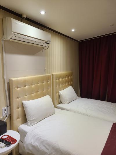 鍾路3街15番出口から、細い小道を入って、数分で着きます。周りは飲食店が多く、牡蠣ポッサム通りもあります。細い小道ではタバコ刷ってる人が多いですが、その先にホテルがあります。部屋は狭いですが、寝るだけなので問題なし。シャンプー、リンス、ボディソープ、石鹸、紙スリッパはあるけど、歯磨きセットはありません。フロントのおじさんが親切でした。二人で週末、12,000円弱でした。