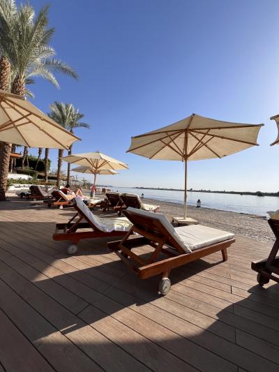 メインプールとインフィニティプールがあって、日が暮れるまでゆっくり過ごせます。残念ながらプールの水が冷たすぎて長く入っていられませんが、ナイル川を眺めながら軽食やビールをいただきながらリゾート感を満喫できます。
