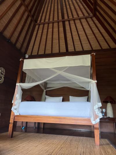 何といってもバリ式天井のお部屋に天蓋付きのベッドがあるコテージがお気に入りです。