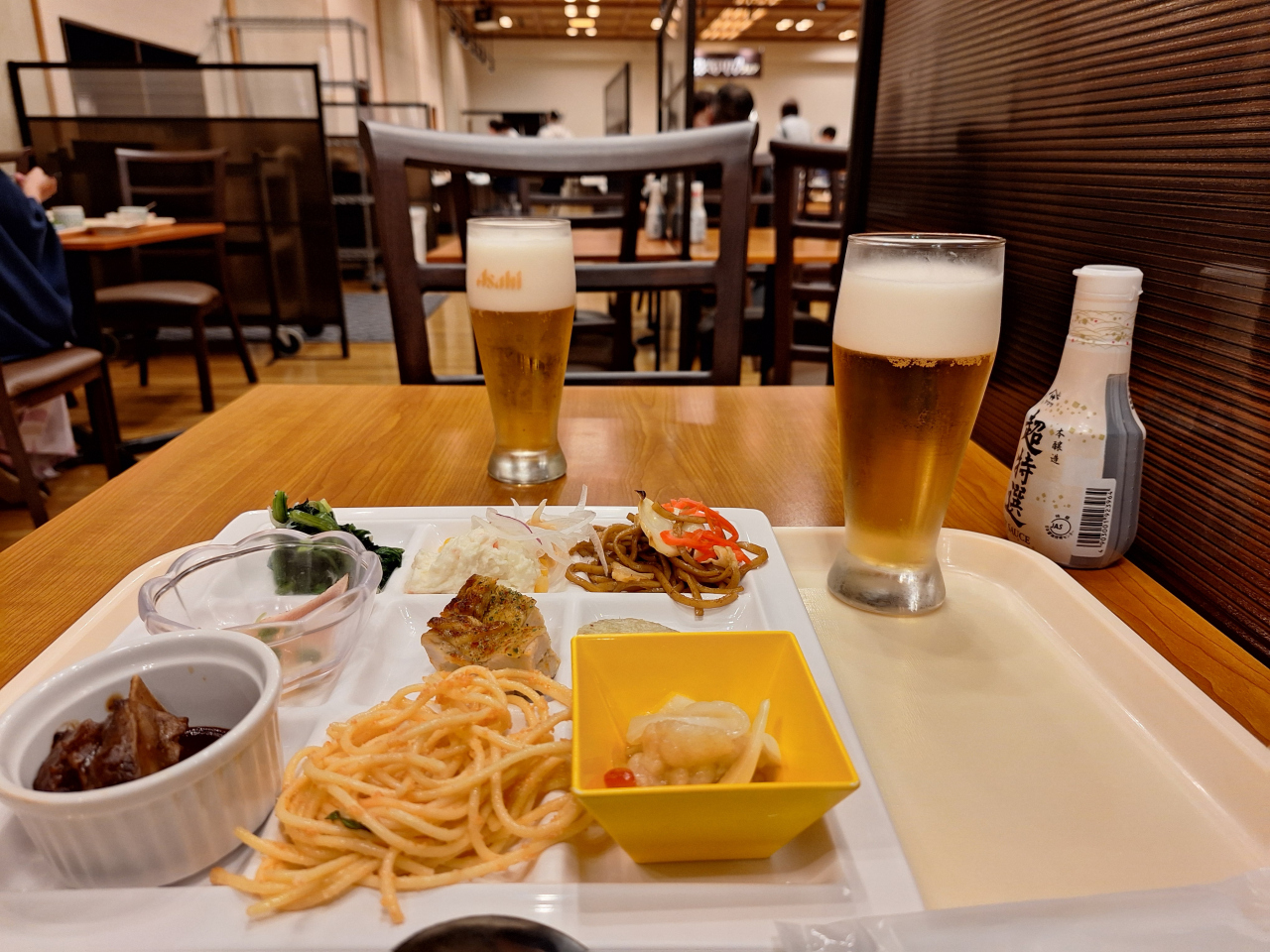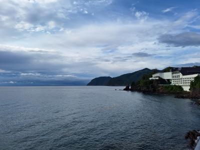 毎度おなじみ、2食付きの夕食時アルコール飲み放題破格温泉ホテルの代表格。このホテルは断崖に張り付くように建っており、外からの景観がなかなかよい。広いオーシャンビューのロビーもたいへん結構。夕食朝食ともに地の物は少ないが、呑み放題で2食付きというありがたいクオリティなので不満はなし。無料のレンタサイクルも嬉しい。露天風呂がないのだけがやや残念だった。