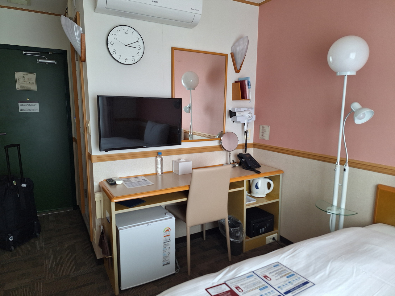 2025年7月時点で東京のビジネスホテルの料金が異常なほど高騰していることを考えると、1泊8000円台での宿泊が可能なのは非常にありがたい。東京駅からJRで30分弱、駅からは少し離れるが一番街に近く飲食にも困らないし、徒歩5分以内にはコンビニもある。利便性を考えても利用価値の大きいホテル。