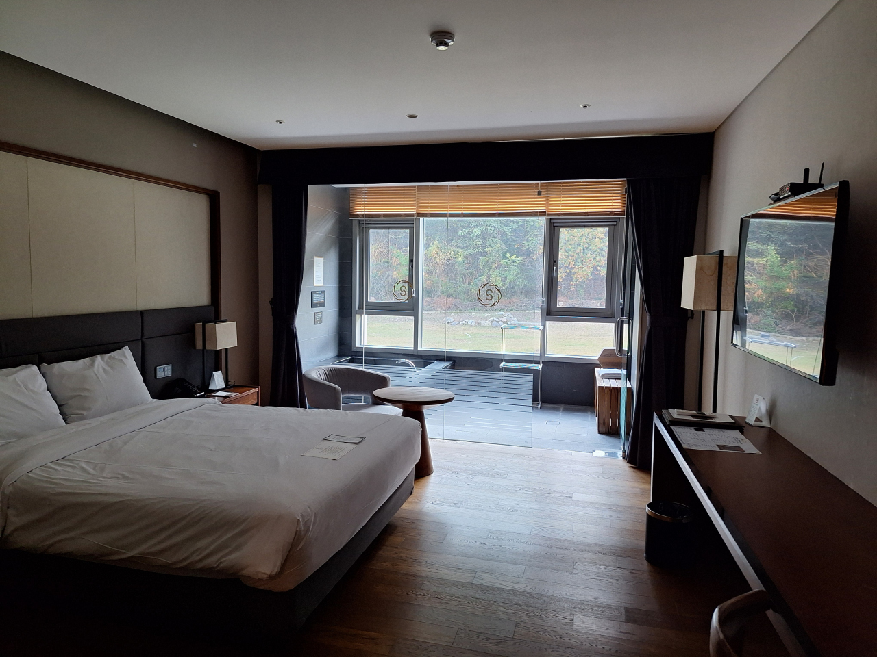 慶州のバスターミナルの隣にある、安宿街の中ではひときわ清潔でおしゃれなミニホテル。朝食付きで、朝食は韓流・洋風混在のビュッフェ。フロントでは変換アダプターの貸し出しもしてくれる。周囲にはコンビニや飲食店も多く、滞在には困らない。