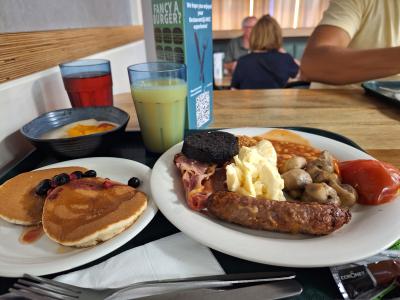 いわゆる大学寮。料金は2025年8月12~15日利用で約58000円。注意点は、エディンバラ大学のキャンパスが位置するジョージスクエアではなく、ホリールード公園の近くなので、新市街やロイヤルマイルからはバスを使わないとアクセスが困難という点。朝食はボリュームたっぷり、バス停は徒歩5分、スーパーマーケットは徒歩10分。タオル交換はなし。8月のエディンバラはホテル代がかなり高騰するので、安く泊まりたい人には選択肢として十分あり。