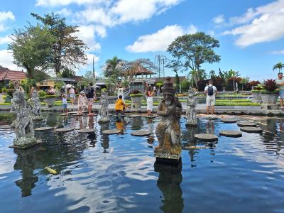 ランプヤン寺院からそれほど遠くない距離にある、棚田と離宮が点在するアンラプラエリアにある、カランアサム王国時代の水の離宮。もちろん再建されているが、バランスの良いメルと飛び石のある池、優美な庭など、写真映えのするスポットとして有名。入場料は70000ルピア。