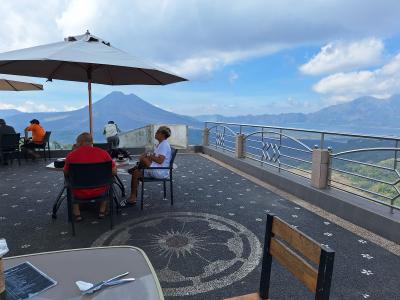 ランチのためキンタマーニ高原のペネロカンというエリアでランチ。バトゥール山と湖が眺められる絶景で、空気もよいが、ツアー客や地元の若者が多く、ドライブコースにもなっているようで渋滞も発生。せっかくならウルン・ダヌ・バトゥール寺院も見学したい。