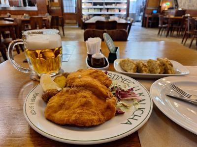 スメタナホールでコンサート後、遅い夕食のために利用。店内は広いが、テラス席もかなりの数があり、満席ということはなさそう。グヤーシュや、ビーフストロガノフのようなスヴィーチコヴァ、ソーセージのトマト煮込みなどが有名。ピルスナーウルケル直営なので、ビールのクオリティは折り紙付き。