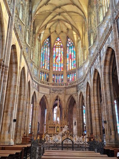プラハ城は歴代ボヘミア王の居城だが、旧王宮よりも圧倒的な存在感を誇るロマネスク様式のヴィート大聖堂が有名。イジー教会、黄金小径などを併せたメインの建造物を巡るチケットが一番人気。注意点は、とにかく9時前にはチケットを買って聖ヴィート大聖堂から見始めること。黄金小径は混んでくると身動きが取れないので注意。