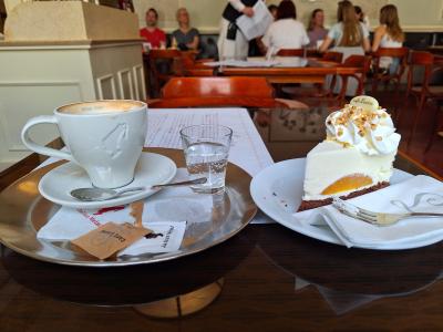 プラハ滞在中2回通った。自家製チーズケーキやオリジナルカプチーノが有名。1902年の創業当時の雰囲気をそのまま残してあるということで、店内は広々としていて一人客の利用も気兼ねなくできる。高級カフェの類だが、サービスは特に人種差別的な雰囲気はないものの、日本と同等のサービスは期待しすぎない方がいい。