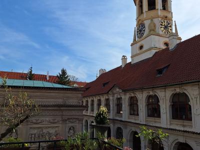 ストラホフ修道院から歩いて5分以内でいける、17世紀建築のバロック様式の教会。礼拝堂内には木製のマリア像が、展示室にはプラハの太陽と呼ばれるダイヤモンドの顕示台が、それぞれある。しかし、個別の展示もさることながら、中庭の勇壮な像や教会全体を包む何とも言えない壮大な雰囲気は、ぜひ体感して欲しいと思う。