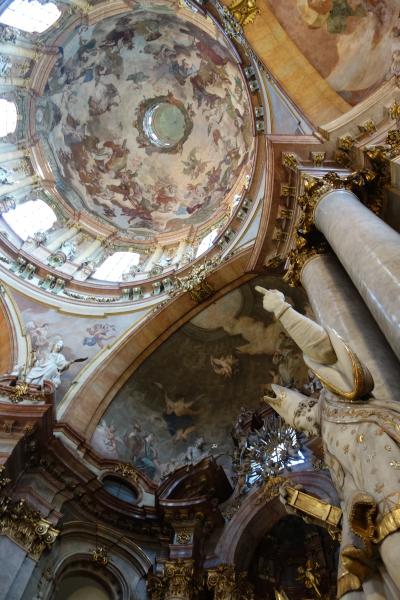 「聖ミクラーシュ教会」という名はチェコ語読みで、英語表記はS・ニコラオス教会といいます。同名の旧市街広場に面して立っていますが、マラーストラナ地区のこちらは有料。ただし、入場料を払ってでも入るべき。天井の聖セシリアのフレスコ画や巨大なクーポラ、モーツァルトが実際に演奏したとされるオルガンなど、歴史が詰まっています。