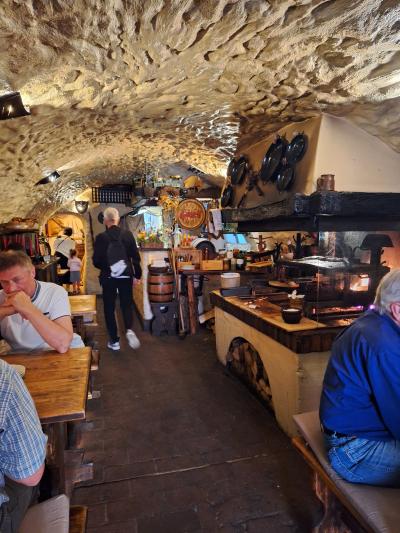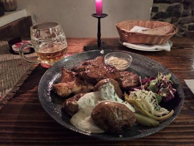 ガイドブックにも載っている有名グリルで、予約必須。名物は2種類のブドヴァルビールと、各種グリル料理。パンを器にしたオニオンスープも美味。対応がぞんざいということはなかったが、アジア人はアジア人部屋のようなところに固めて案内されていたのが少し気になった。味つけは濃いのでビールにはよく合う。