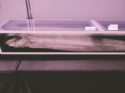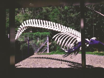 海中展望塔から道路を渡って徒歩5分ほどで到着。中は、10mを超えるツチクジラの骨格標本や、房総沖の魚の生息状況、海中の大型海藻、カジメ海中林の実物の展示など、房総半島を取り巻く豊富な水産資源の理解を深めるのにうってつけの内容。30分程度で見学できるので、親子連れにも最適。