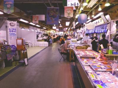 秋田市民の台所、といった感じの市場だが、生鮮食品を除いて価格はどれも観光客設定になっている。ここでしか出店していないカフェやレストラン、食堂もあり、駅前のホテルのチェックイン開始時間を待つまでの間の観光としても使い勝手は良い。朝早くから空いており、和朝食を提供する店もある。