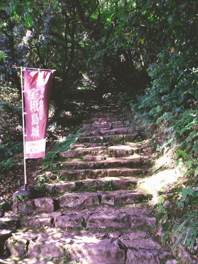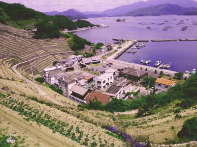 宇和島のビュースポットといえば、段畑と宇和海が360度一望できるこちら、ということで、宇和島駅から路線バスで1時間で到着したこちら。海と山が迫る特殊な地形を生かすために生まれたという段畑もさることながら、晴れた日に段畑の上から一望できる宇和海の眺めも見事。畑下の広場にある茶屋では鯛めしや鯛どんぶりがいただける。