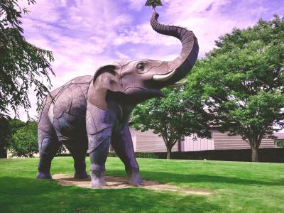 大分市中心部循環バスの1日乗車券(200円)を買えば、いい時間つぶしとしてちょうどよい距離。特別展はバンクシーなど注目のアーティストをフィーチャーしたものもあるが、常設展はそれほどのボリュームはなく、その分入館料も安い。屋外にはシンボルの巨大な象のモニュメントがあり、別府湾が見渡せる高台アリ。